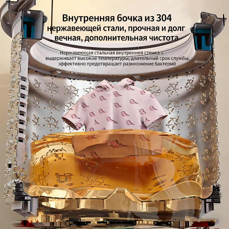 内桶选用食品级 304 不锈钢材质,耐高温不易变形,长期使用也能保持光亮如新。光滑的内壁不易残留污渍和滋生细菌,减少衣物二次污染,给宝宝和家人更安心的穿着体验。