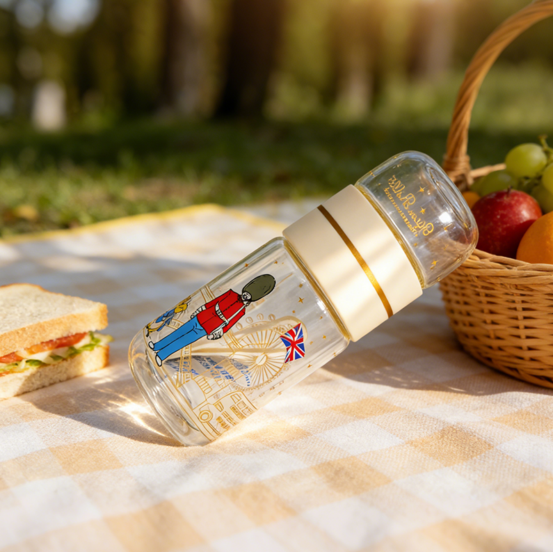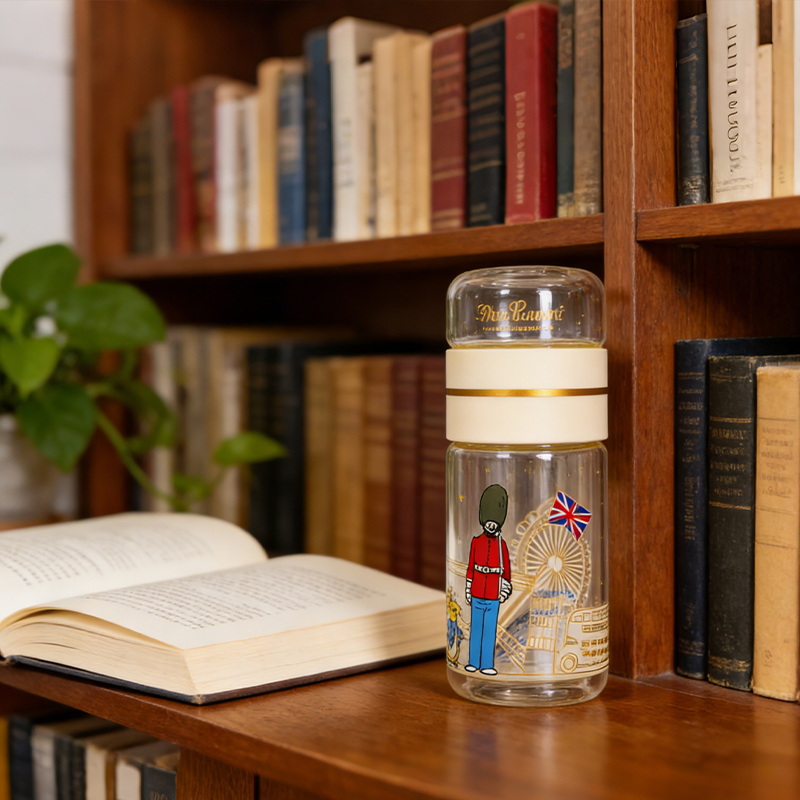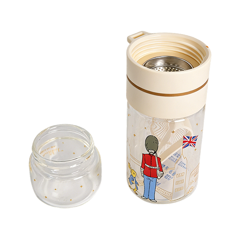带滤芯玻璃水杯 奶油色便携随手杯 带挂绳旅行办公泡茶杯