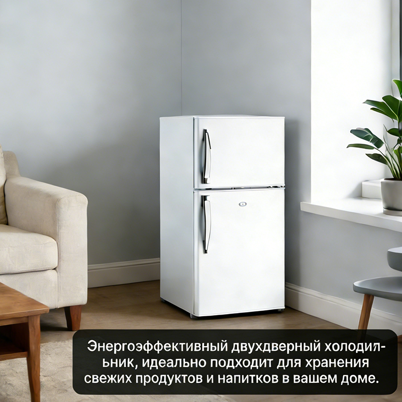 这款双门冰箱拥有 118 升的实用容量,上下分层设计可实现冷冻和冷藏分区存储,满足日常食材保鲜需求。它采用节能低耗设计,运行时噪音小,不会打扰你的生活与休息。