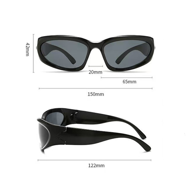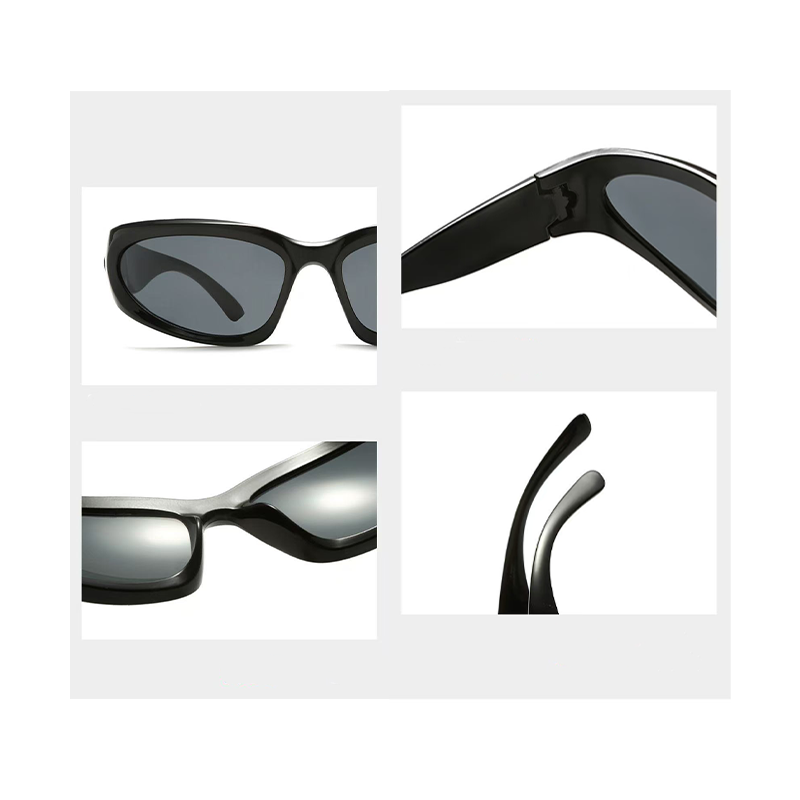 这款太阳镜采用未来感窄框设计,线条流畅的弧形镜身兼具机能风与 Y2K 复古氛围,窄框造型可修饰脸型,打造利落精致的视觉效果。镜片具备 99% 防蓝光功能,能有效缓解电子屏幕带来的眼疲劳,同时具备 UV400 防护,可阻隔紫外线,适配室内办公、户外出行、街头穿搭等多场景。镜架采用柔韧耐用的材质,镜腿可弯折贴合耳型,无度数设计适合各类人群佩戴,长时间使用也不易压鼻夹耳,细节做工精致,是兼顾护眼功能与潮流造型的实用配饰。
