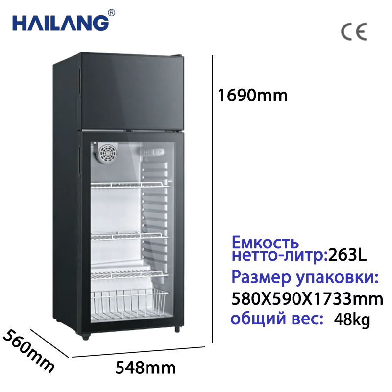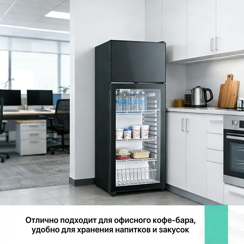 这款 双门冰吧采用上下分层设计,上层为封闭冷冻区,下层为通透玻璃门冷藏区,兼具冷冻与冷藏双功能,适合家庭客厅、办公室、小型商铺等场景使用。263 升大容量可轻松存放饮料、零食、水果、冰淇淋等多品类物品,简约大气的黑色玻璃机身可适配多种装修风格,成为空间里的实用型装饰单品。