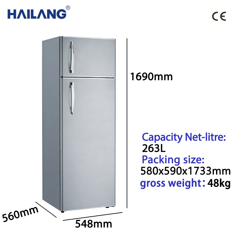 这款 HAILANG 双门冰箱采用不锈钢拉丝机身设计,简约耐用且适配多种装修风格,263 升大容量满足家庭日常或小型商铺的冷藏冷冻需求,上下分层结构可分别存放不同食材,兼顾实用与便捷。