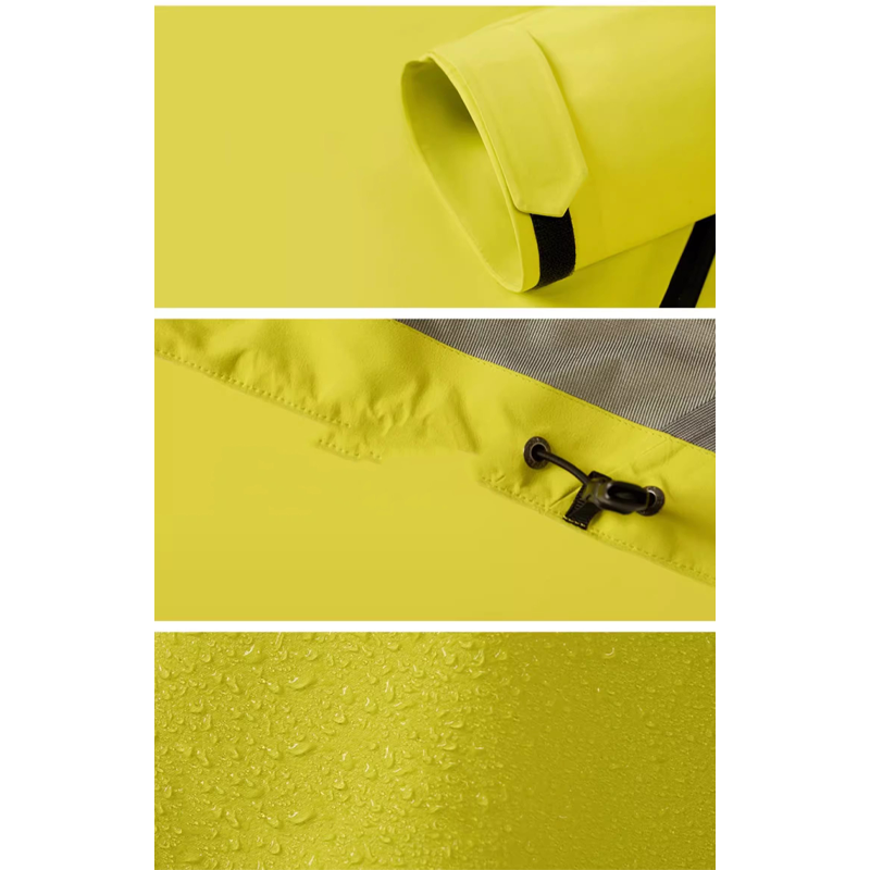 本产品1.面料防水手感柔软 2.内里复合一层网布吸湿排汗 3.抽拉帽绳设计抗风同时更显休闲 4.大口袋大容量适用户外旅游场景