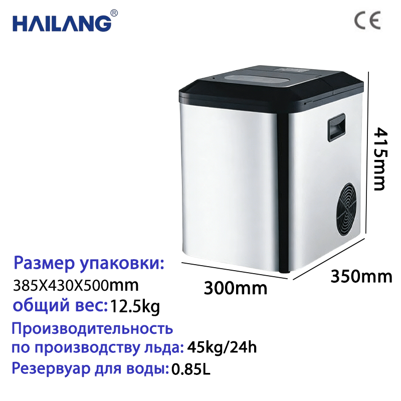 这款制冰机日产量可达 45kg,搭配 0.85L 可拆卸水箱,可满足奶茶店、咖啡店、餐厅等小型商铺的日常用冰需求,也适配家庭、办公室场景。不锈钢机身兼具美观与耐用性,立式迷你设计仅占 0.105㎡空间,不占过多场地。一键操作快速出冰,运行噪音低,不打扰营业与日常使用。