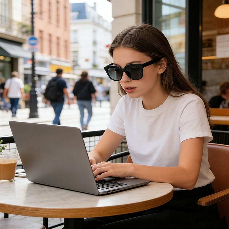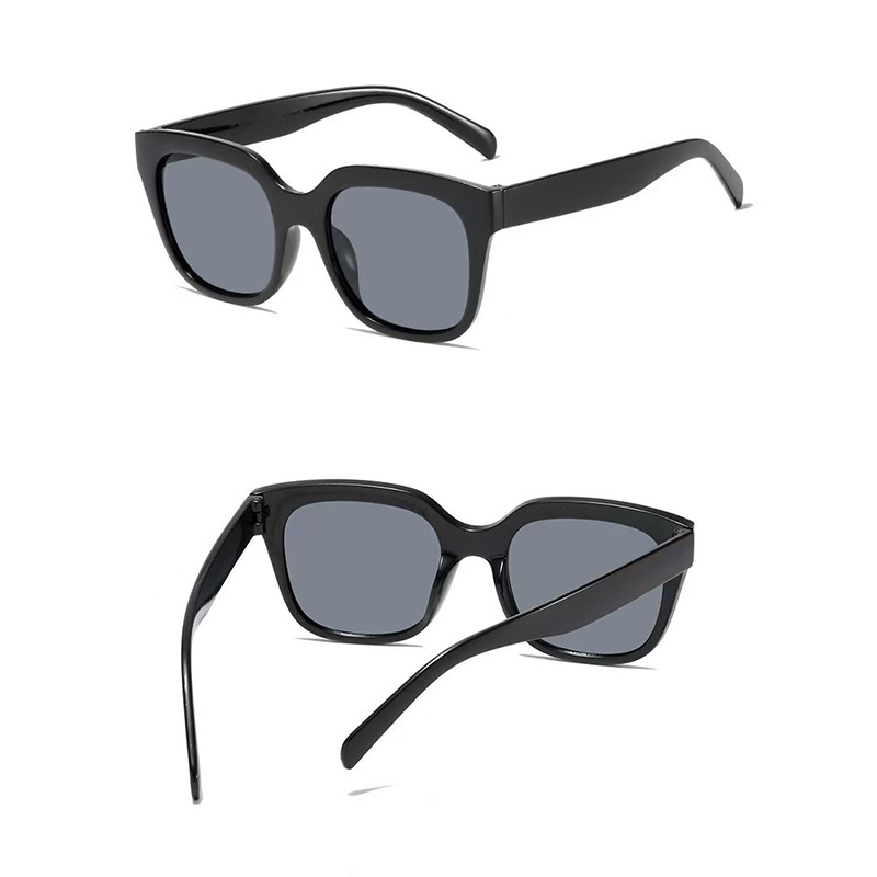 这款太阳镜采用经典大框方形设计,纯黑镜身简约百搭,大框造型可修饰脸型,轻松打造显脸小的视觉效果,适配日常通勤、出游、街拍等多种场景。镜片具备 UV400 防护功能,可有效阻隔紫外线,强光下也能保持清晰视野,兼顾美观与实用。镜架材质轻盈柔韧,镜腿贴合耳型,长时间佩戴不易压鼻夹耳,细节做工精致,是日常防晒与造型搭配的必备配饰。