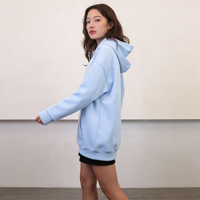 这款奶蓝色连帽卫衣,是专为女生打造的日常百搭舒适单品,将温柔质感与休闲风格完美融合。
