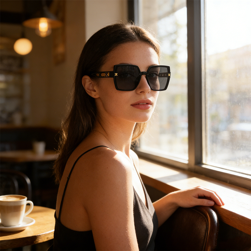 这款驾驶墨镜专为全天候出行设计,采用大框金属镂空镜架,搭配渐变镜片,兼具轻奢质感与时尚风格,大框造型可修饰脸型,打造显脸小的视觉效果。镜片为偏光材质,白天可过滤强光与紫外线,夜间能增强光线对比度,提升雨天、雾天的视野清晰度,适配不同路况。镜架采用耐用金属材质,超轻且弹性柔韧,防滑鼻托设计贴合鼻型,佩戴稳固不易滑落,长时间驾驶也无压迫感,是日常通勤、长途驾驶、户外出行的实用护眼配饰。